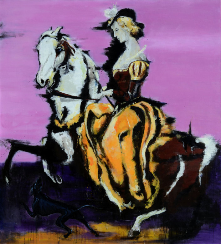 Reiterin, 2019 mixed media on canvas, 170x150 cm